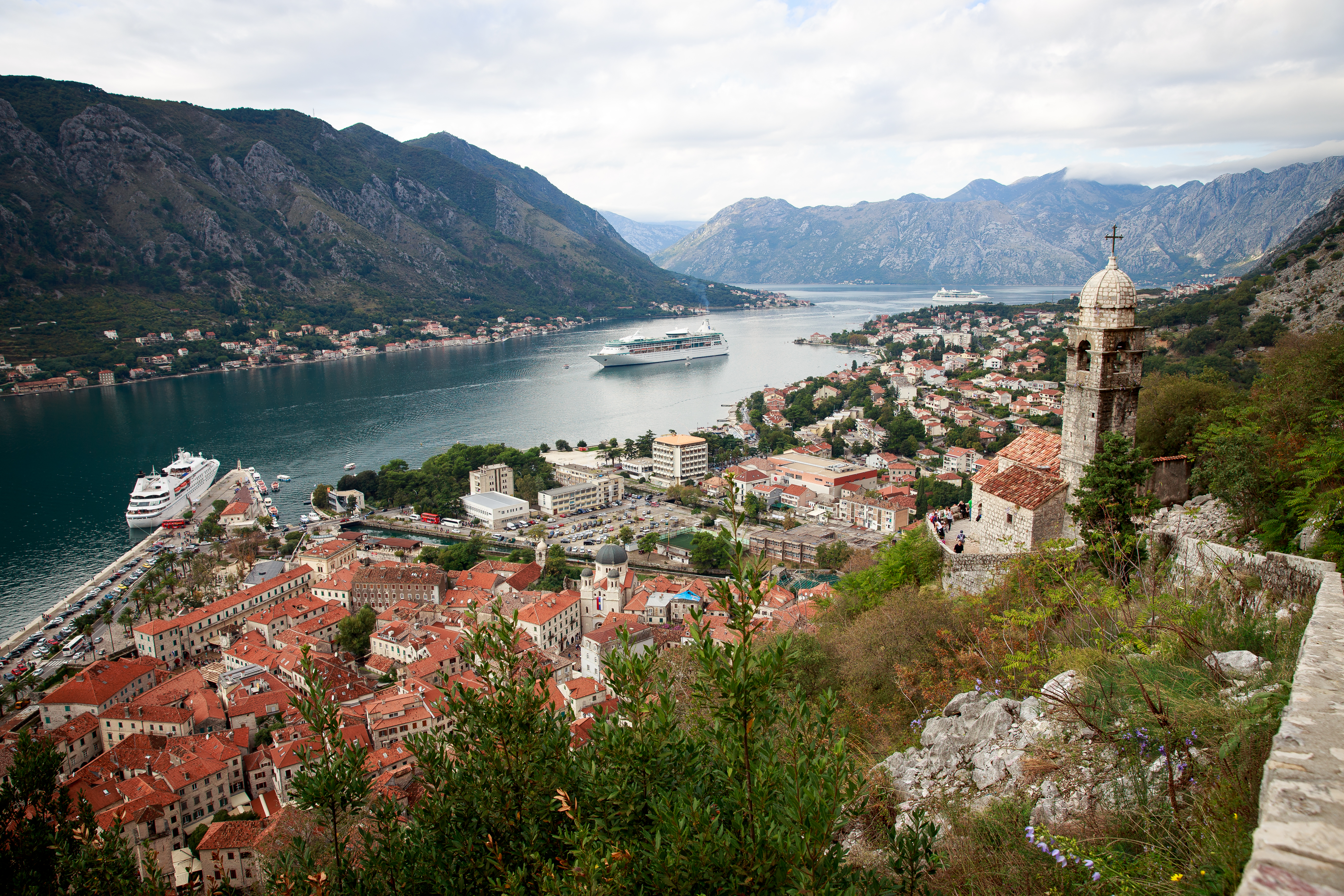 After cruising through the night we awoke early to see the beautiful sights as we made our way into Kotor. Rain and fog added to the mood as we slowly passed through the Bay of Kotor, or as it’s called there, Boka Bay. The bay is thought to be a fjord with it’s tall mountains, however it was not created by a glacier.